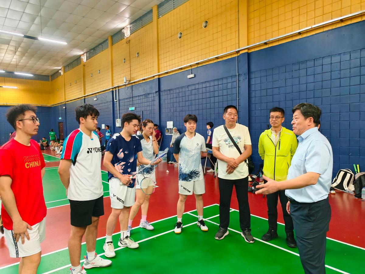 访问期间,韩克飞一行还看望了赴该校参与第二届东盟能源高校体育比赛暨研学夏令营的中石大代表队,现场观看羽毛球、乒乓球、足球等比赛并与40余名师生交流,肯定了师生们的表现,同时鼓励同学们当好友谊使者,以体育竞赛为桥梁,加强与参赛各国青年的文化和学术交流。在活动闭幕式上,韩克飞与参加本次比赛和研学夏令营的各国代表团负责人进行了会谈交流,向取得优胜的队伍表示祝贺。