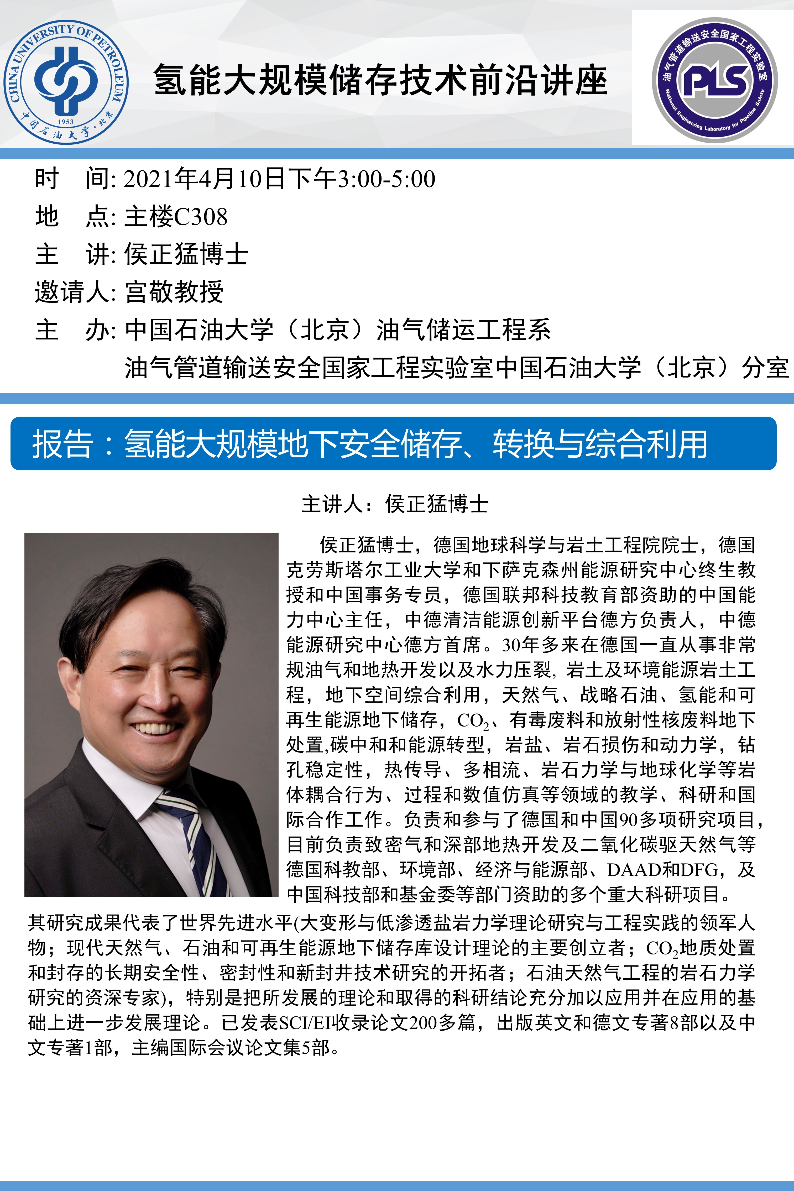 学术报告:氢能大规模地下安全储存、转换与综合利用