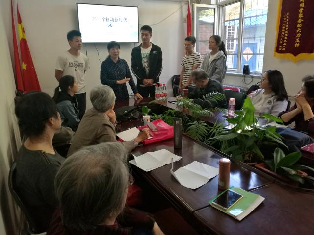 为适应信息化时代的飞速发展,享受智能手机带来的生活便捷,离退休工作处本学期继续邀请北京科技大学冶金学院大学生志愿者为我校离退休教职工举办智能手机培训讲座,这是我处在石油大院举行的第三期智能手机培训。10月8日下午,第三期培训正式开班,开班第一讲首先向老同志介绍“5G”,什么是5G,5G将给我们的生活带来什么样的变化等,讲座吸引了10位老同志参加,授课的学生志愿者有7位。