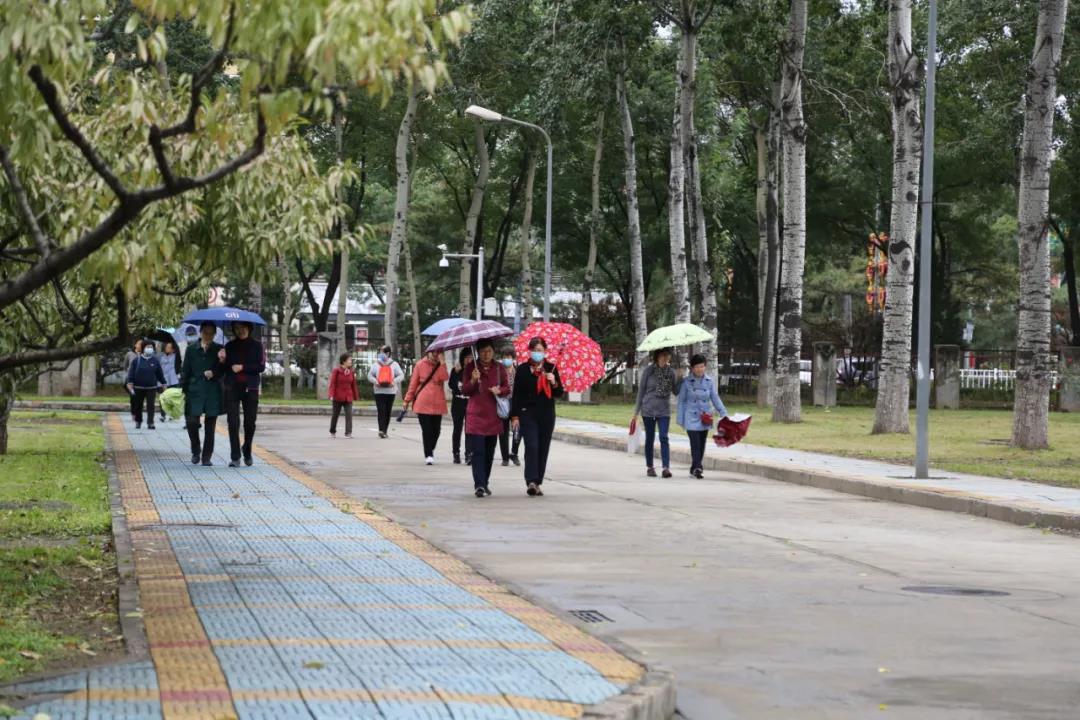 霞披夕阳情无限,霜染秋枫叶正红。微风细雨送秋爽,瓜果梨桃正香甜。10月14日上午,中石大离退休工作处在昌平东校园举办了以“庆建党百年,迎重阳佳节”为主题的健步走活动,一百多名离退休教职工在蒙蒙细雨中参加了本次活动。