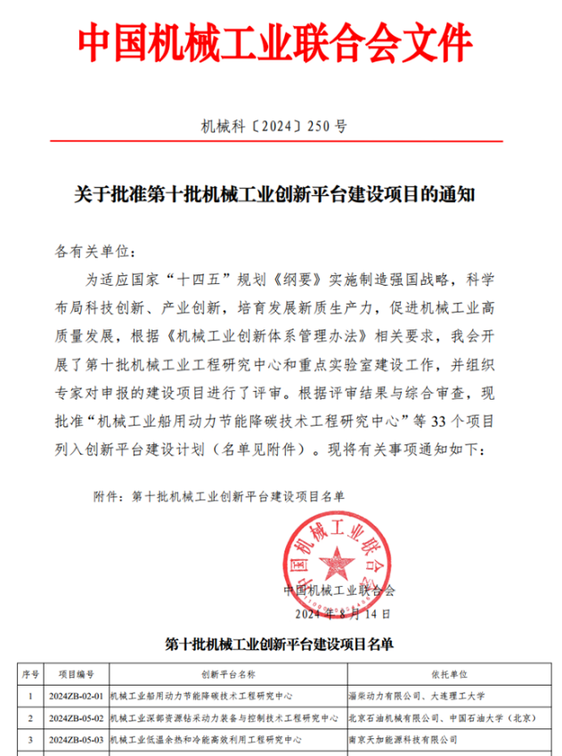 为顺应国家“十四五”规划《纲要》的要求,实施制造强国战略,科学规划科技与产业创新,推动机械工业实现高质量发展,中国机械工业联合会根据《机械工业创新体系管理办法》的相关规定,开展了第十批机械工业工程研究中心和重点实验室的评审工作。由北京石油机械有限公司(以下简称北石)和awc77万象城官网机械与储运工程学院(以下简称石油大学机械学院)共同申报的《机械工业深部资源钻采动力装备与控制技术工程研究中心》平台建设项目顺利通过评审,开展建设工作。