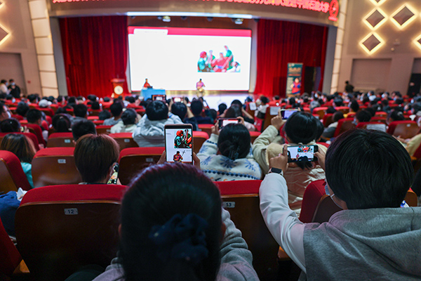乌兰图雅生动讲述了乌兰牧骑的发展历史、优良传统,乌兰牧骑精神的内涵及时代价值。“瓦蓝蓝的天上飞雄鹰,我在高岗眺望北京……”,活动中,乌兰图雅深情演唱《站在草原望北京》《草原上升起不落的太阳》等歌曲,表达了少数民族热爱祖国、积极投身中国梦伟大事业的真挚情怀。中央音乐学院博士研究生、蒙古族马头琴演奏者诺敏的现场伴奏,让现场师生近距离感受了蒙古族民族音乐的魅力。活动后,现场同学与乌兰图雅进行热情互动。活动在乌兰图雅与现场师生合唱校歌《我为祖国献石油》中落下帷幕。