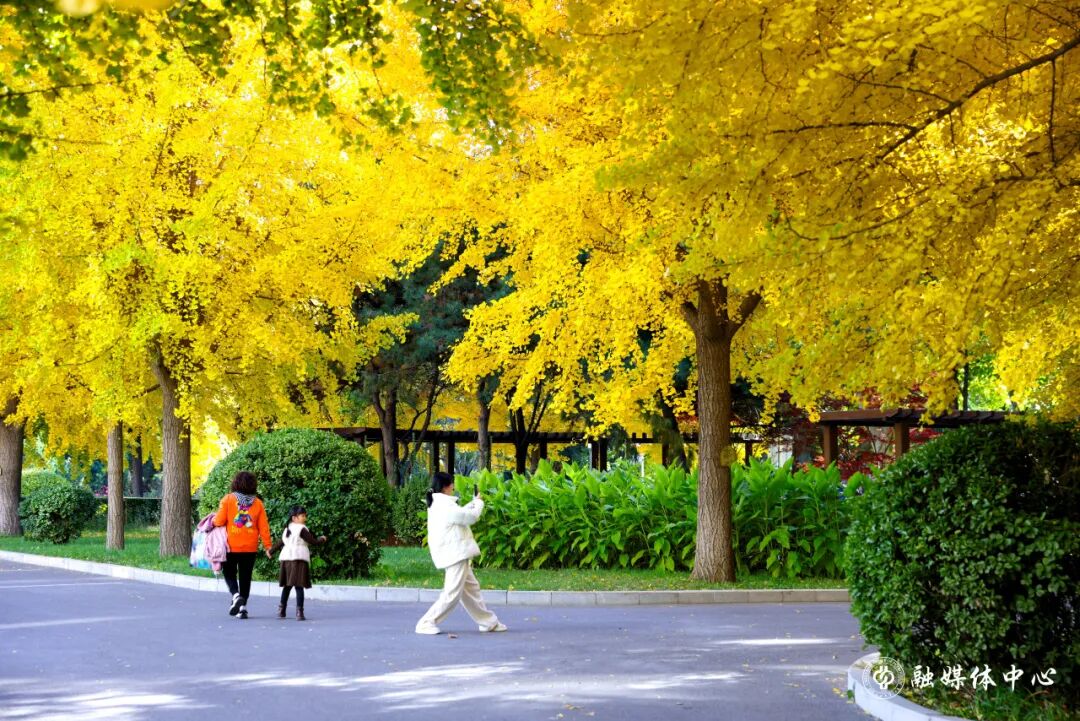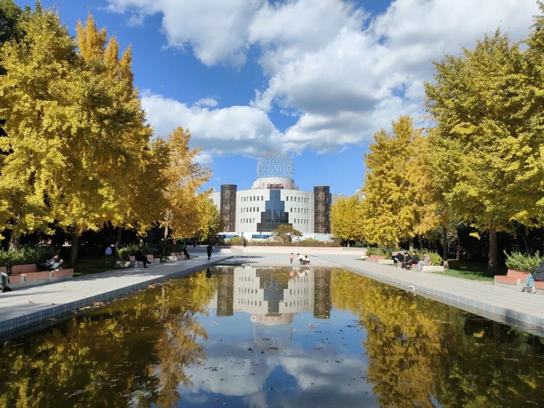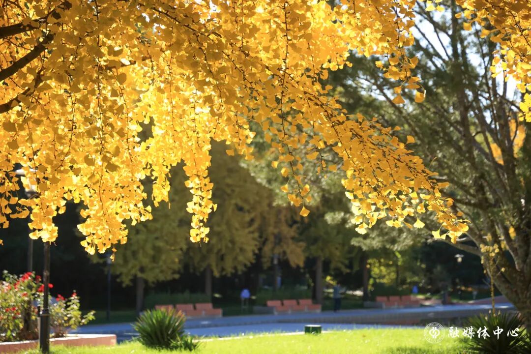 秋风执笔,蘸着军都山的清风,将整座校园重新描摹,它染过青年园的眉梢,拂过图书馆的窗格,在每一个晨昏里,酝酿着一场盛大的色彩交响。现在,请凝神屏息——