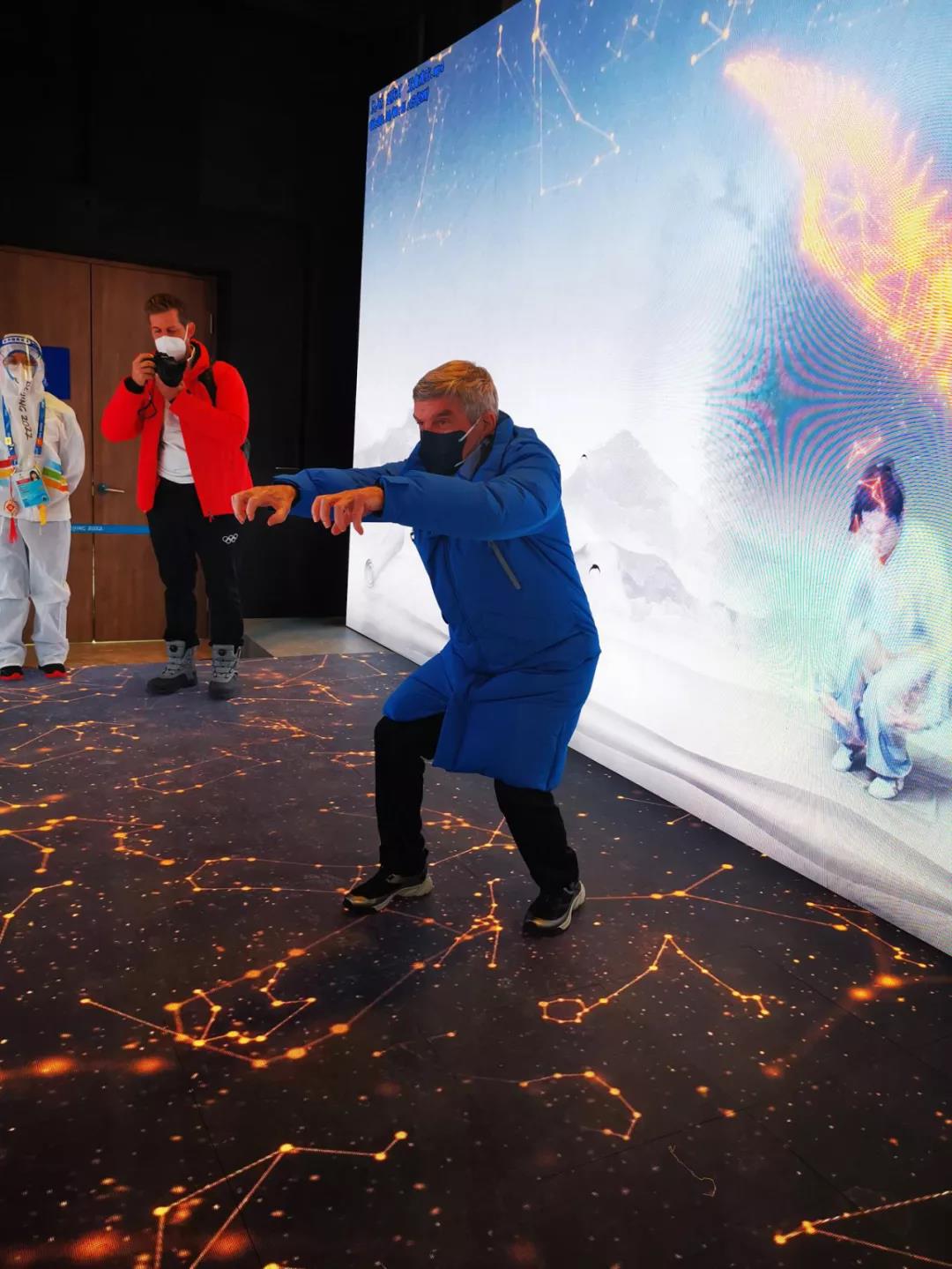 图为巴赫主席在延庆冬奥村“10秒”中医药体验馆体验五禽戏。 延庆冬奥村供图