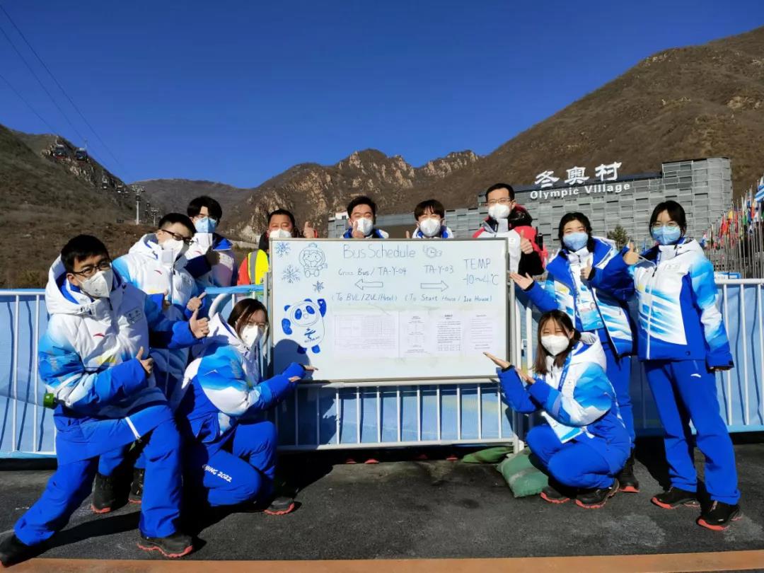 由于闭环内车辆多路线复杂,为了保证运动员准时、安全抵离,志愿者们在运动员班车场站用提示板制作了简易乘车时间表,每天将当日班车打印张贴,供外国朋友们查询。同时为了让时刻表看起来更加吸睛,志愿者们又在提示板上画上了时尚顶流冰墩墩,现在途经此处的外国友人总会拿起手机与志愿者们合影,俨然成了冬奥村内的网红打卡地。