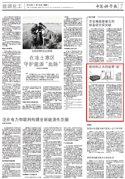 中国科学报:新材料让太阳能更“能”