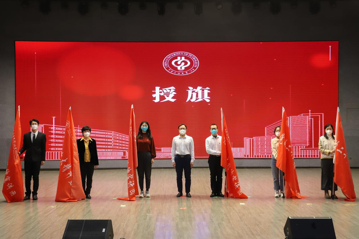 刘坚宣读了校区党的二十大精神宣讲团及各分团成员名单,并为各宣讲团代表授旗。