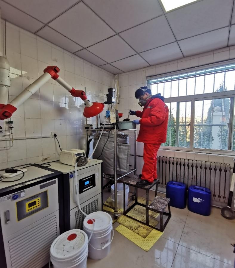张百川在中国石化石油工程技术研究院有限公司开展专业实践研究,由校内导师贾文峰副研究员和企业导师杨小华正高级工程师共同指导,入选中国石化集团公司科技部“页岩油气高性能水基钻井液研究与应用”重点项目团队。他长期深入钻井平台和生产一线实践,面向深井钻探常用的高密度钻井液性能优化问题,研发了一种天然材料类钻井液降滤失剂,较市售同类降滤失剂产品具有成本更低、降滤失效果更好、黏度更低、更为环保等优良特性,尤其是深部地层的高温高压高盐条件下,仍具较好的降滤失效果。该成果完成了中试放大实验5组,完成中试生产3釜,产出液体产品共6.3t。