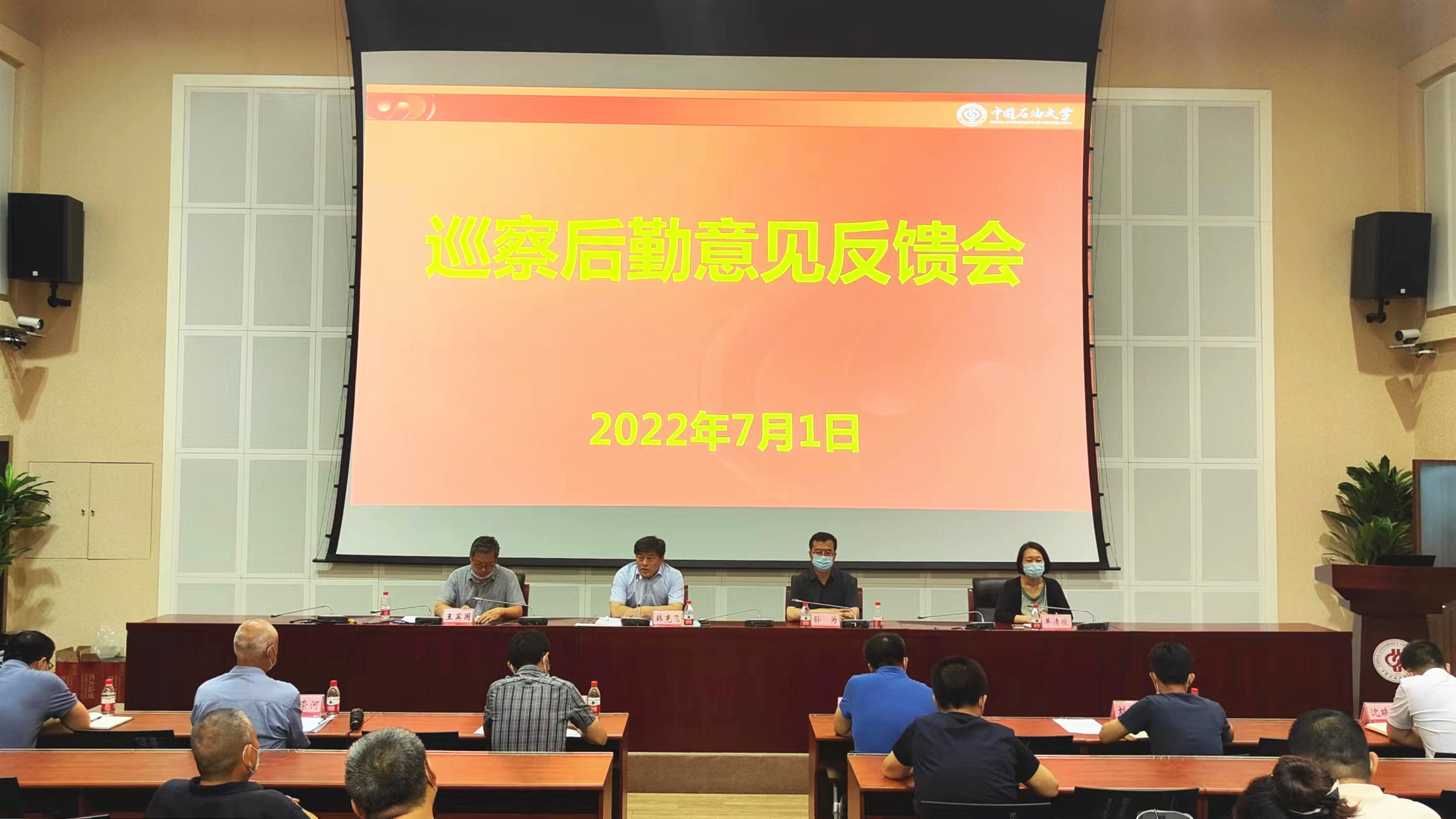 6月30日至7月1日,中国石油大学召开党委第七轮巡察情况反馈会,分别向后勤、图书馆(档案馆)、校属企业管理办公室(新元公司)反馈巡察意见。学校党委副书记、纪委书记韩克飞,党委巡察组、巡察工作办公室、纪委监督检查室相关人员,被巡察单位全体处级干部和员工代表参加会议。