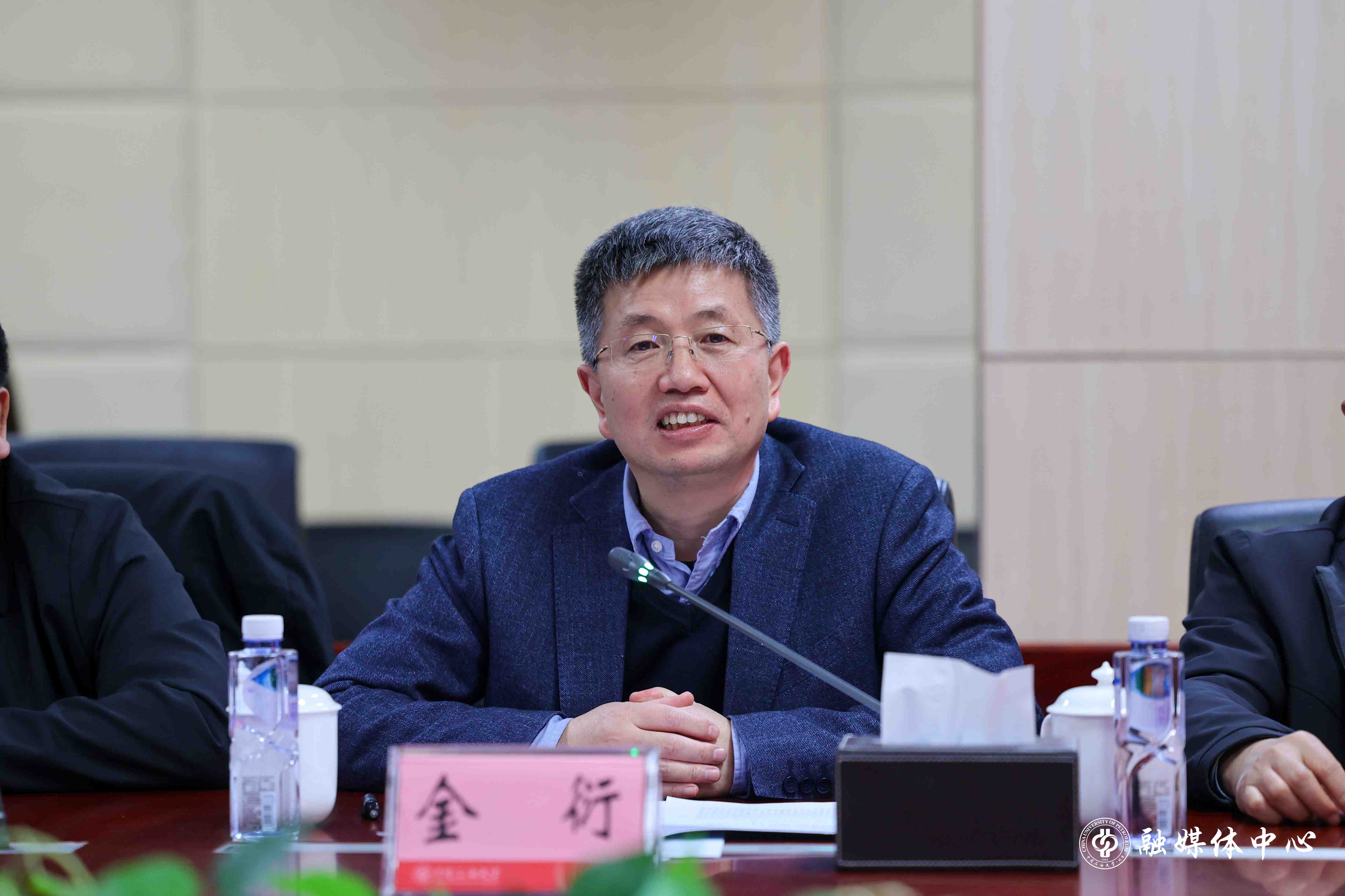 金衍代表学校对东方物探公司一行的到来表示欢迎。他表示,中石大始终坚持面向国家能源战略需求,高度重视与行业企业的协同创新。他希望以此次交流为契机,进一步深化双方在人工智能与油气勘探融合领域的合作,共同推动油气行业向智能化、高效化转型。