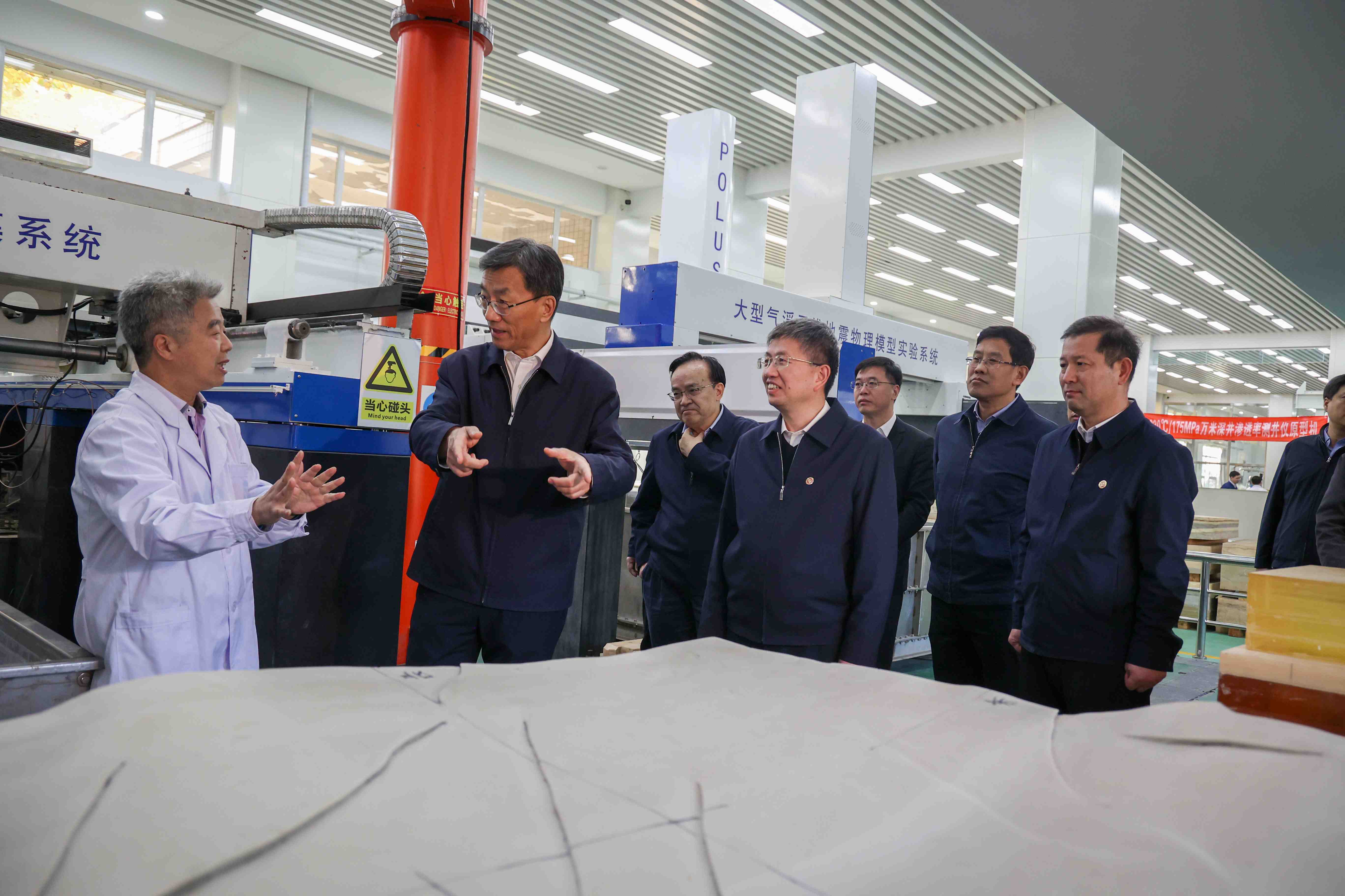 在awc77万象城官网,怀进鹏深入国家卓越工程师学院,听取了学院建设情况汇报,详细了解了学院的建设理念、建设任务、学科布局、导师队伍建设、课程与教材建设、校企协同培养和协同攻关、评价和保障体系建设、工程技术中心建设等情况。在油气资源与工程全国重点实验室,怀进鹏听取了实验室推进科技创新、开展科研攻关情况汇报,参观了油气勘探开发上游系列大型实验装置和设备,详细了解了沉积水槽实验平台、石油工程岩石力学实验平台、井孔地球物理测井平台、大型气浮三维地震物理模型实验系统等取得的科研成果和成果转化应用情况。怀进鹏听取了学校实施开放融合战略,落实国家教育对外开放重大部署、服务我国石油工业“走出去”情况以及中巴教育国际交流合作情况汇报,参观了学校“勇担时代使命 矢志能源报国”学习贯彻习近平总书记重要回信精神主题展厅。