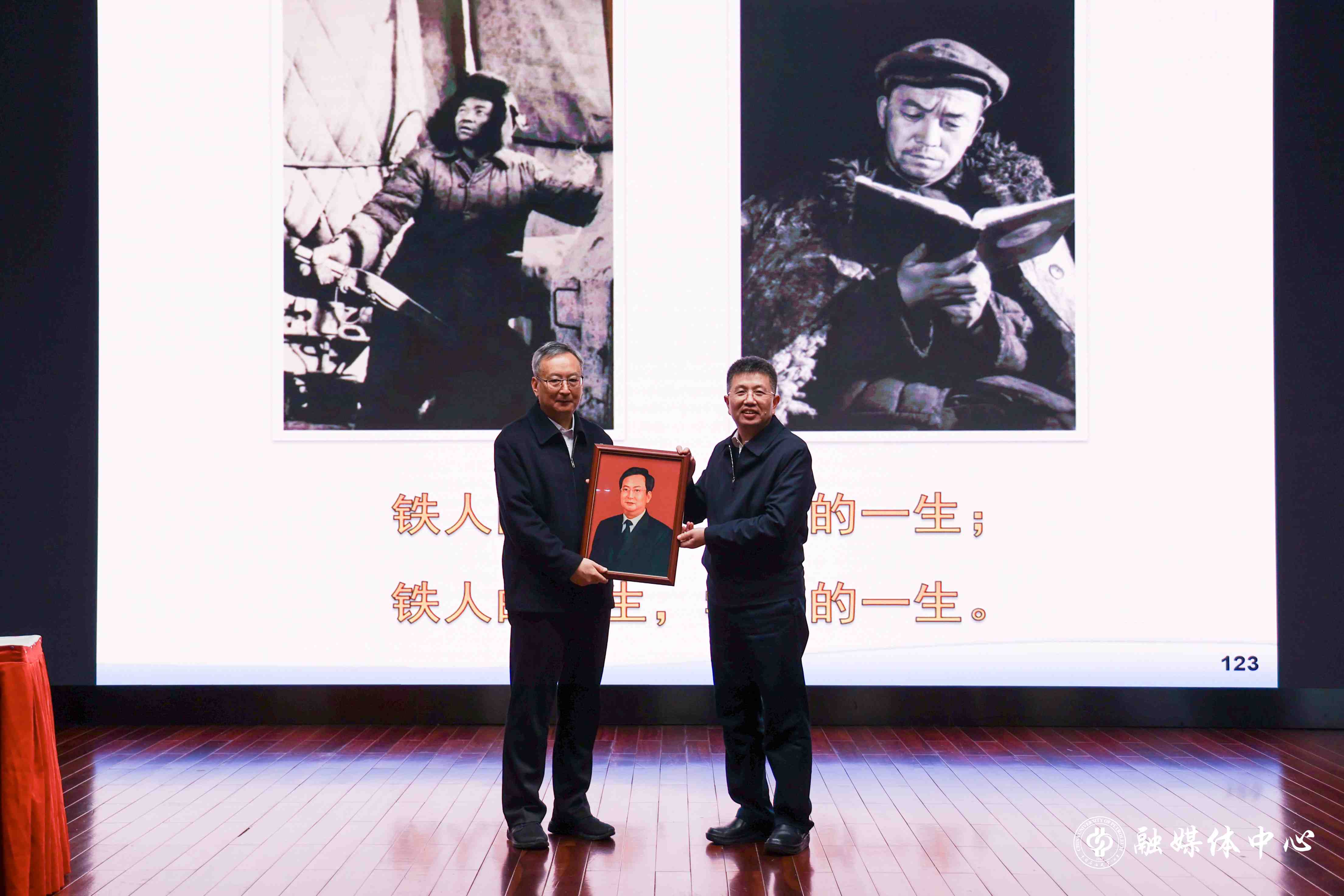 讲座后,金衍代表学校向孙龙德赠送《科学家精神文创画像》。