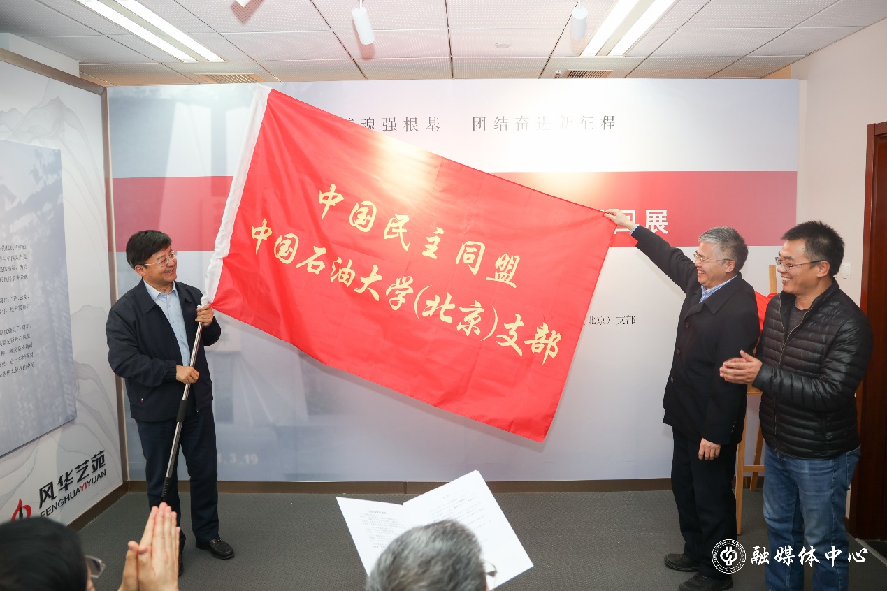 启动仪式上一同进行了民盟中石大支部“盟员之家”揭牌及授旗仪式,张来斌院士、李根生院士等代表学校接受赠画及赠书。