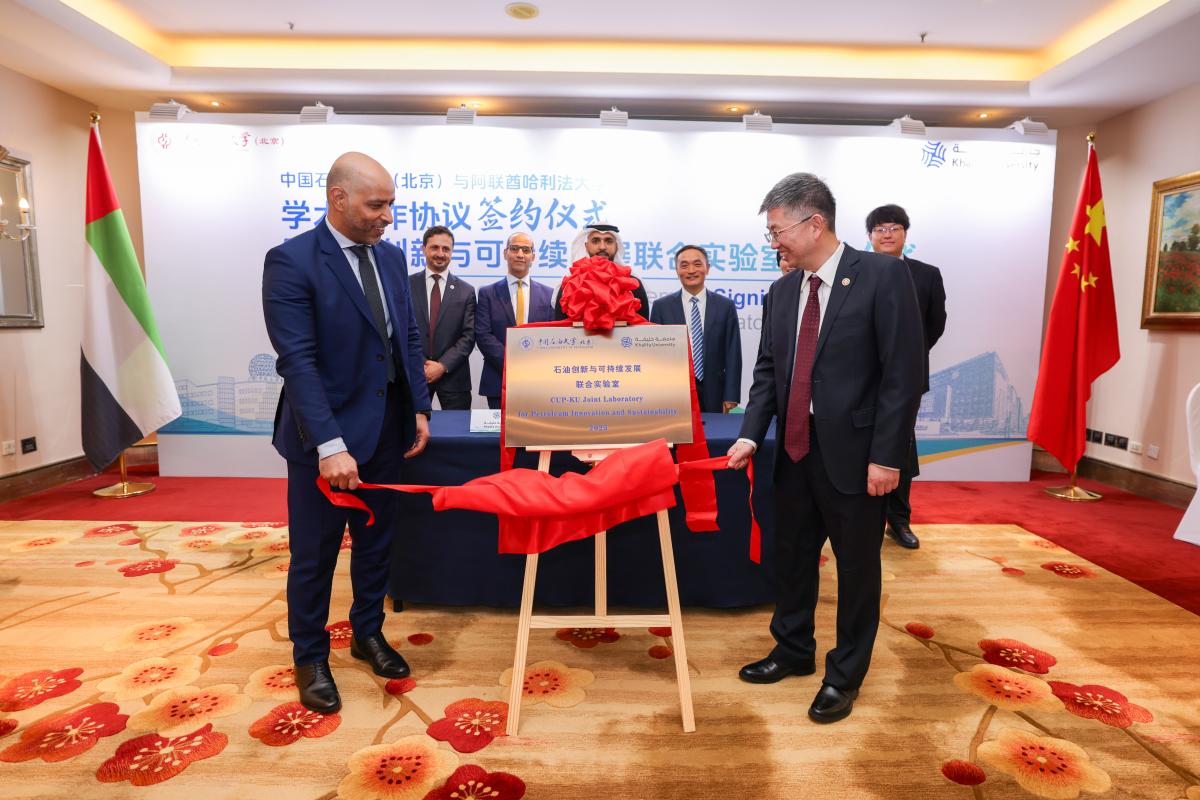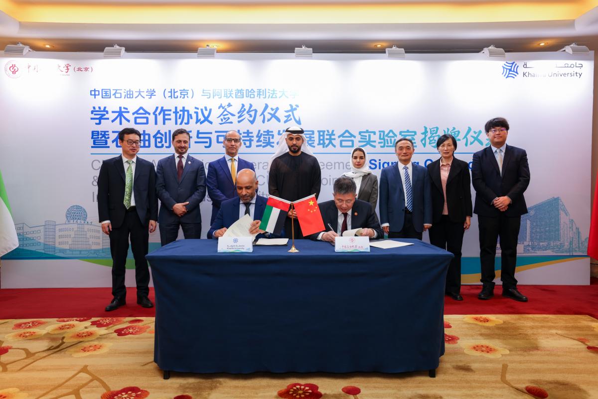 中石大与阿联酋哈利法大学签署学术合作协议并揭牌联合实验室