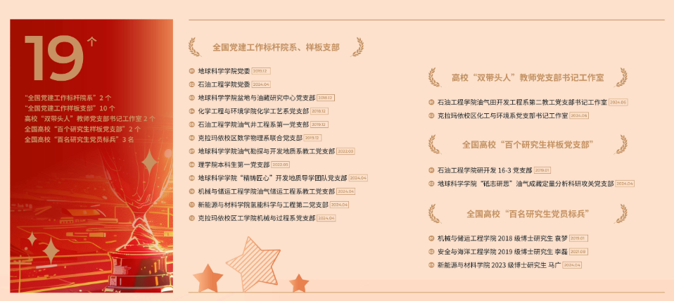 创新基层党建新模式,建立党支部“1+4”示范共建机制,通过联合能源企业、属地政府等开展党建共建,形成“党建引领、团队共建、平台共筑、人才共育、成果共赢”的融合模式,实践成果获评首都大学生思政工作实效奖特等奖。