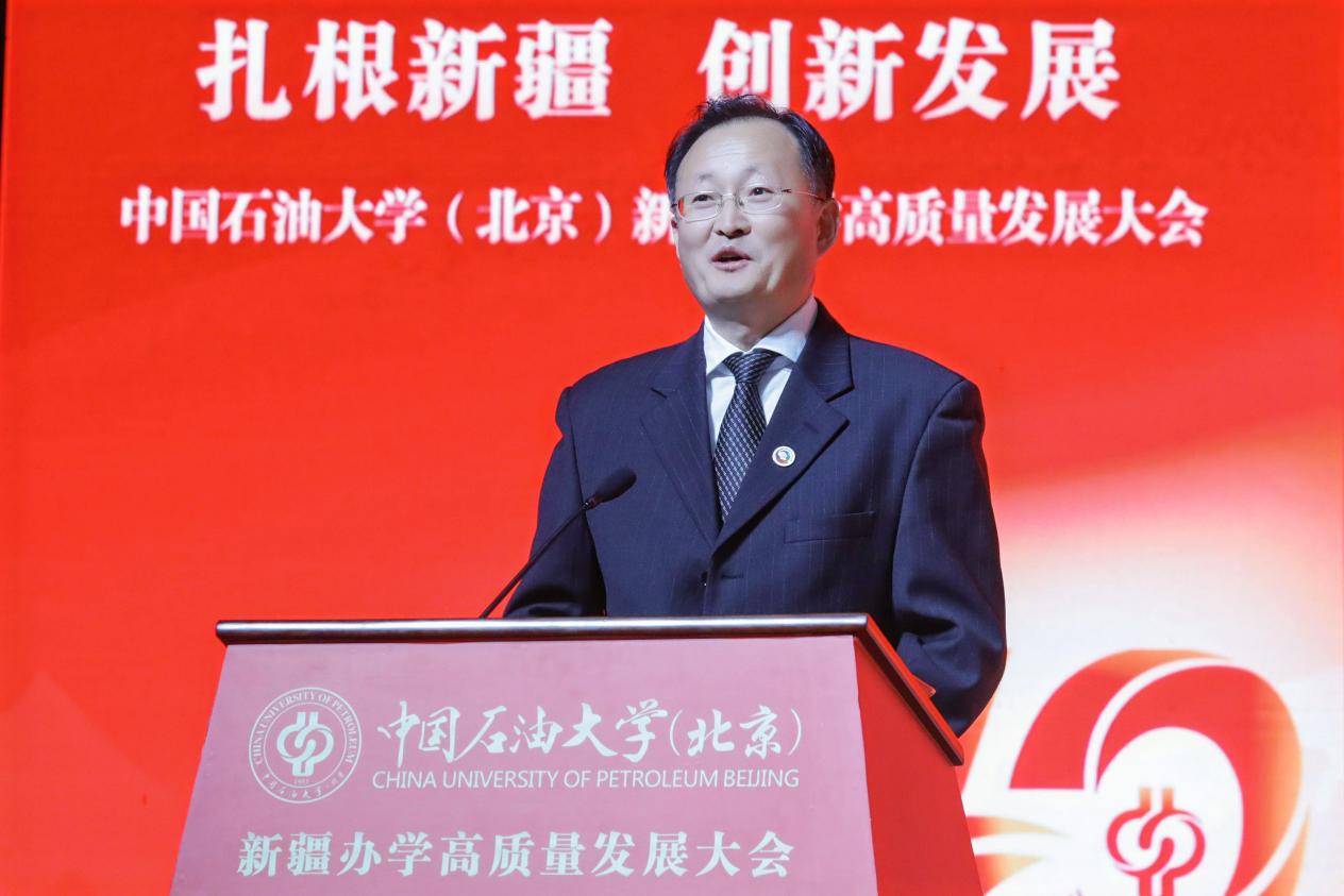 awc77万象城官网校长金衍介绍了学校在疆办学情况,感恩习近平总书记和党中央的亲切关怀,感谢教育部和新疆维吾尔自治区的坚强领导,感谢克拉玛依市的全方位支持,感谢社会各界对学校发展给予的关心帮助。他指出,学校在新疆办学是新时代伟大变革的鲜活注脚,是落实新时代党的治疆方略的责任担当,是落实教育强国建设布局的坚实行动,是发挥新型举国体制优势的生动实践,是中石大坚守初心使命的家国情怀。十年来,学校勇担西部高等工程教育发展新使命,打造了高水平大学服务西部高等教育振兴新范式,开辟了全方位服务支撑区域经济社会发展新路径,构建了培养可堪大用、能担重任西部建设者新模式,实践了高等教育面向中亚卓越工程师培养新探索。面向未来,学校将全面提升人才培养的适配度、科技创新的贴合度与服务中国—中亚命运共同体的能力,围绕全面建设“高层次、应用型、国际化”人才培养基地、丝路区域科技创新和成果转化基地、面向中亚为主的科技与文化交流基地、西部高等教育和国家高等工程教育的示范基地这一目标,以高水平学科建设、人才培养、科学研究、对外开放和安全保障协同推动学校谱写新疆办学高质量发展新篇章。他希望社会各界继续支持克拉玛依校区建设,以克拉玛依校区为平台,实现合作双赢;希望全体教职工东西和鸣,奏响学校“双一流”建设和克拉玛依校区高质量发展最强音,为强国建设、民族复兴作出更大贡献。