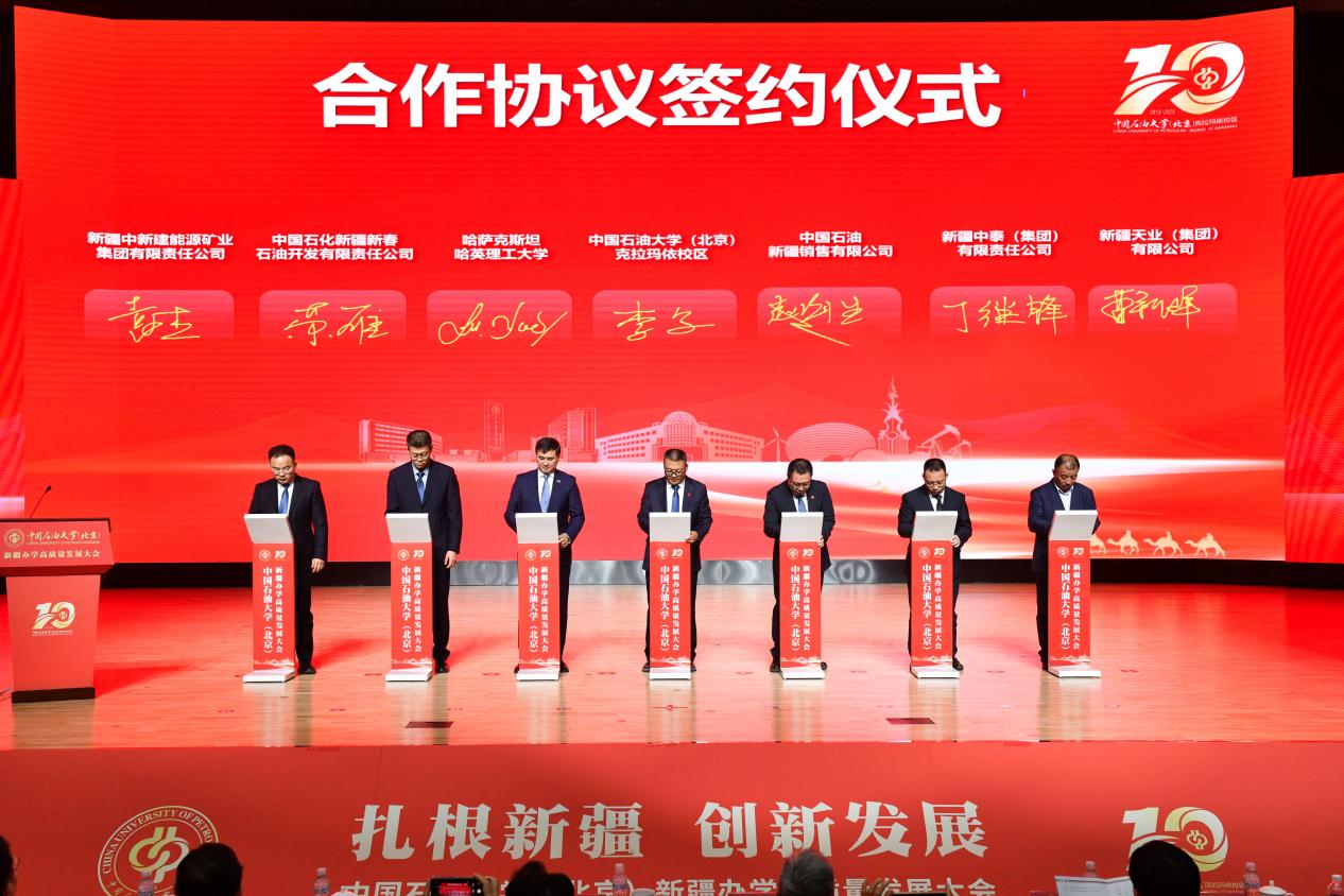 十年来,学校持续推动克拉玛依校区与行业企业合作共建,先后与中国石油新疆油田公司、国能新疆化工有限公司等84家企业签署合作协议,共同搭建高水平、宽领域、深层次的校企合作平台,以生产实践促进人才培养、以智力资源服务产业发展。会上,克拉玛依校区与哈英理工大学、中国石油新疆销售有限公司、中国石化新疆新春石油开发有限责任公司、新疆中泰(集团)有限责任公司、新疆中新建能源矿业集团有限责任公司、新疆天业(集团)有限公司签署了合作协议。