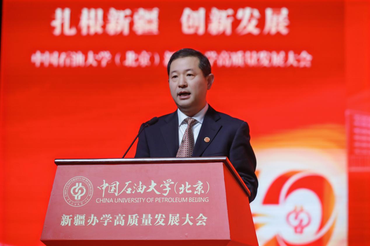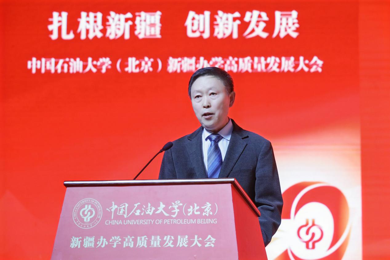 王同奇在主持中表示,十年来,全体中石大人勠力同心、奋楫笃行,在新疆这片热土上,用鲜活的办学实践,书写了一份高校服务党和国家重大战略的政治答卷,绘就了一张建设世界一流大学宏伟征程在祖国边疆的生动画卷,续写了一幅中石大精神在新时代传承创新的历史长卷。站在新起点上,学校将继续坚持以习近平新时代中国特色社会主义思想和党的二十大和二十届二中、三中、四中全会精神为指导,深入贯彻落实习近平总书记给学校两次重要回信精神和全国教育大会精神,在建设教育强国新征程上,牢牢把握教育的政治属性、人民属性、战略属性,追求卓越、奋勇前行,推动克拉玛依校区扎根新疆,加快“四个基地”建设,为全面推进中华民族伟大复兴贡献中石大力量。