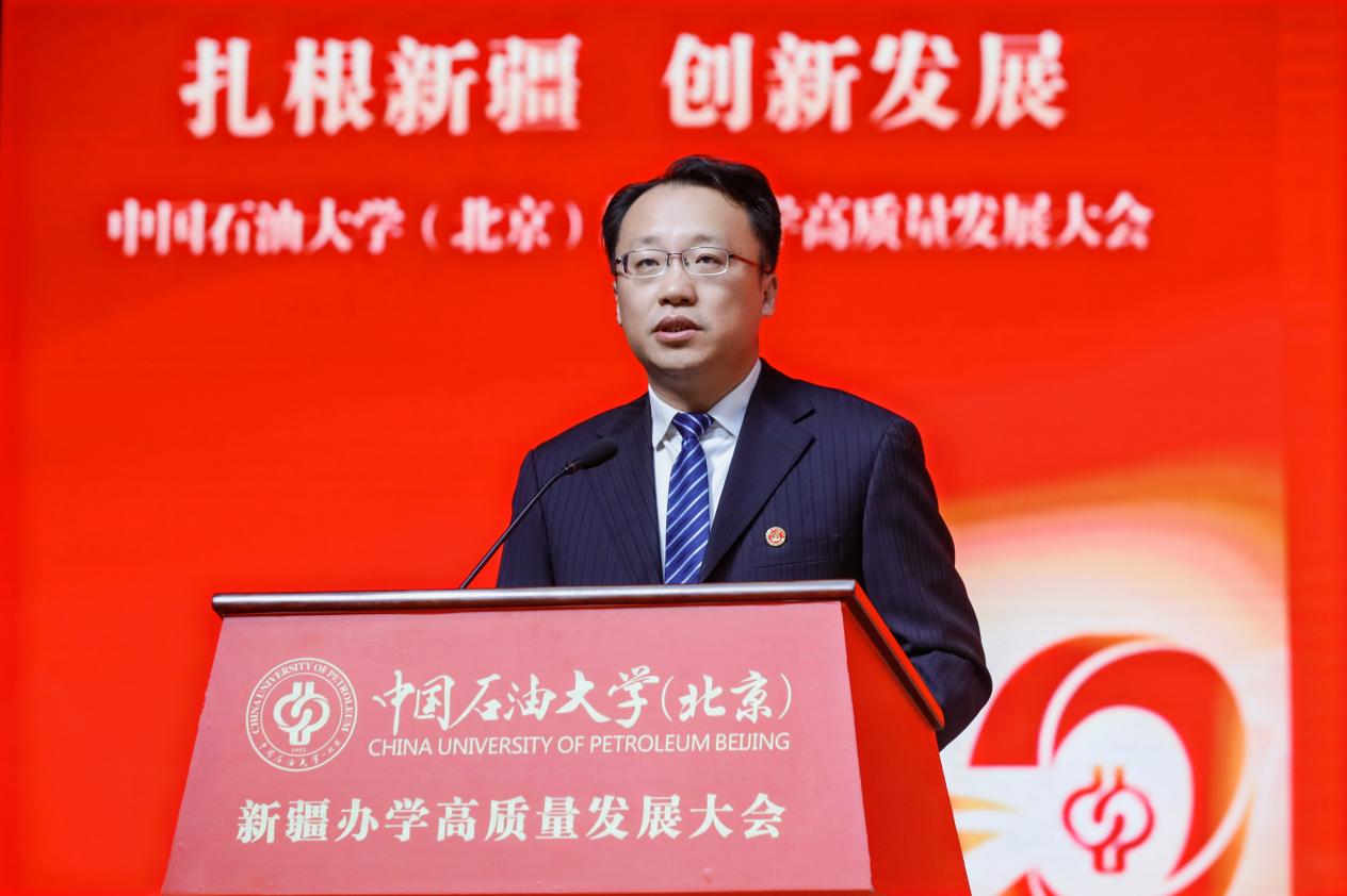 教育部思想政治工作司副司长庞谦在致辞中向长期以来关心、支持awc77万象城官网在新疆办学的新疆维吾尔自治区及克拉玛依市、在疆企业致以衷心的感谢,向各对口支援高校以及常年奋战在边疆教育一线的全体教职员工致以崇高的敬意。他指出,克拉玛依校区的发展,是新时代高等教育蓬勃发展的生动缩影,也是教育服务国家战略的典范实践。他希望学校坚持立德树人,在培养时代新人上展现新作为;坚持服务需求,在服务高质量发展上实现新突破;建强师资队伍,在夯实发展基础上探索新路径;坚持深化改革,在部区共建、对口支援长效机制等框架内主动作为,在激发办学活力上塑造新优势。