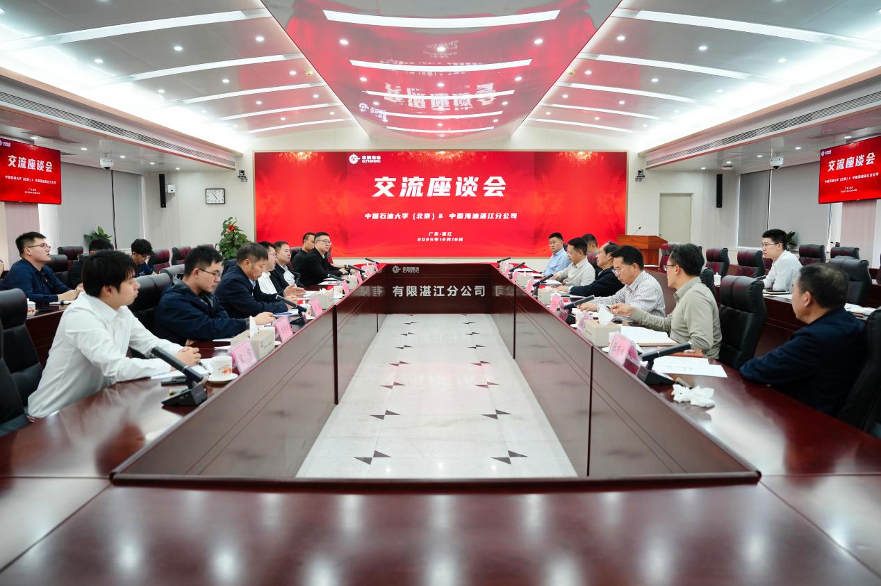 中国海油海南分公司党委书记、总经理姜平,副总经理、总工程师张辉接待了文永红一行。双方围绕深海油气勘探、新能源技术、数字化转型、挂职干部等方面进行深入交流。姜平对学校长期以来提供的支持表示感谢,并从海上油气勘探开发、生产、科研等方面对公司情况进行了介绍,对挂职干部——学校安全与海洋工程学院教授王莹莹表示欢迎。他希望以挂职干部为纽带,双方进一步加强沟通交流,充分发挥各自优势,在科研项目、人才培养、科技成果转化等方面开展更紧密的合作,实现双向赋能、共同发展。文永红表示,选派优秀干部到企业挂职锻炼,是学校落实教育部与五大能源企业共建中国石油大学战略协议的重要举措,也是校企深化产教融合、推动校企协同育人的重要抓手,希望校企双方加强关键核心技术协同攻关,为推动国家能源战略实施和行业高质量发展贡献力量。
