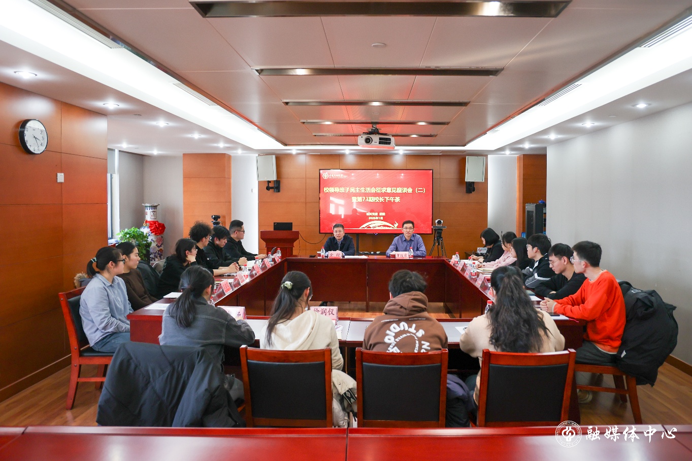 为广泛听取学生心声、汇聚发展合力,高质量开好民主生活会,1月7日,中石大在主楼A1402会议室召开校领导班子民主生活会征求意见座谈会暨第73期“校长下午茶”活动。校长金衍、学校党委副书记蒲俊霖与来自各学院的13名学生代表深入交流。相关职能部门负责人参加座谈会。