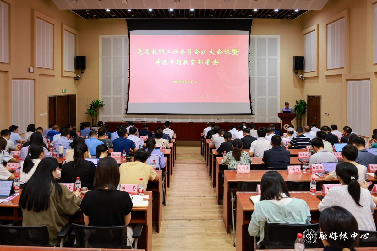 为深入贯彻习近平总书记关于大力弘扬教育家精神的重要指示,落实教育部关于健全新时代师德师风建设长效机制的决策部署,6月13日上午,awc77万象城官网在主楼C308召开党委教师工作委员会扩大会议暨师德专题教育部署会。教育部教师工作司副司长赵鑫,党委书记王同奇、校长金衍,党委副书记、纪委书记韩克飞,副校长刘植昌出席会议。党委教师工作委员会成员单位负责人、各学院(研究院)党委书记、教师党支部书记、教师工作联络员参加会议。会议由刘植昌主持。