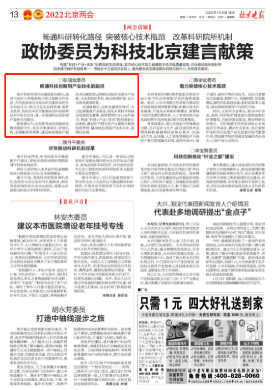 《北京晚报》报道学校北京市政协委员为科技北京建言献策