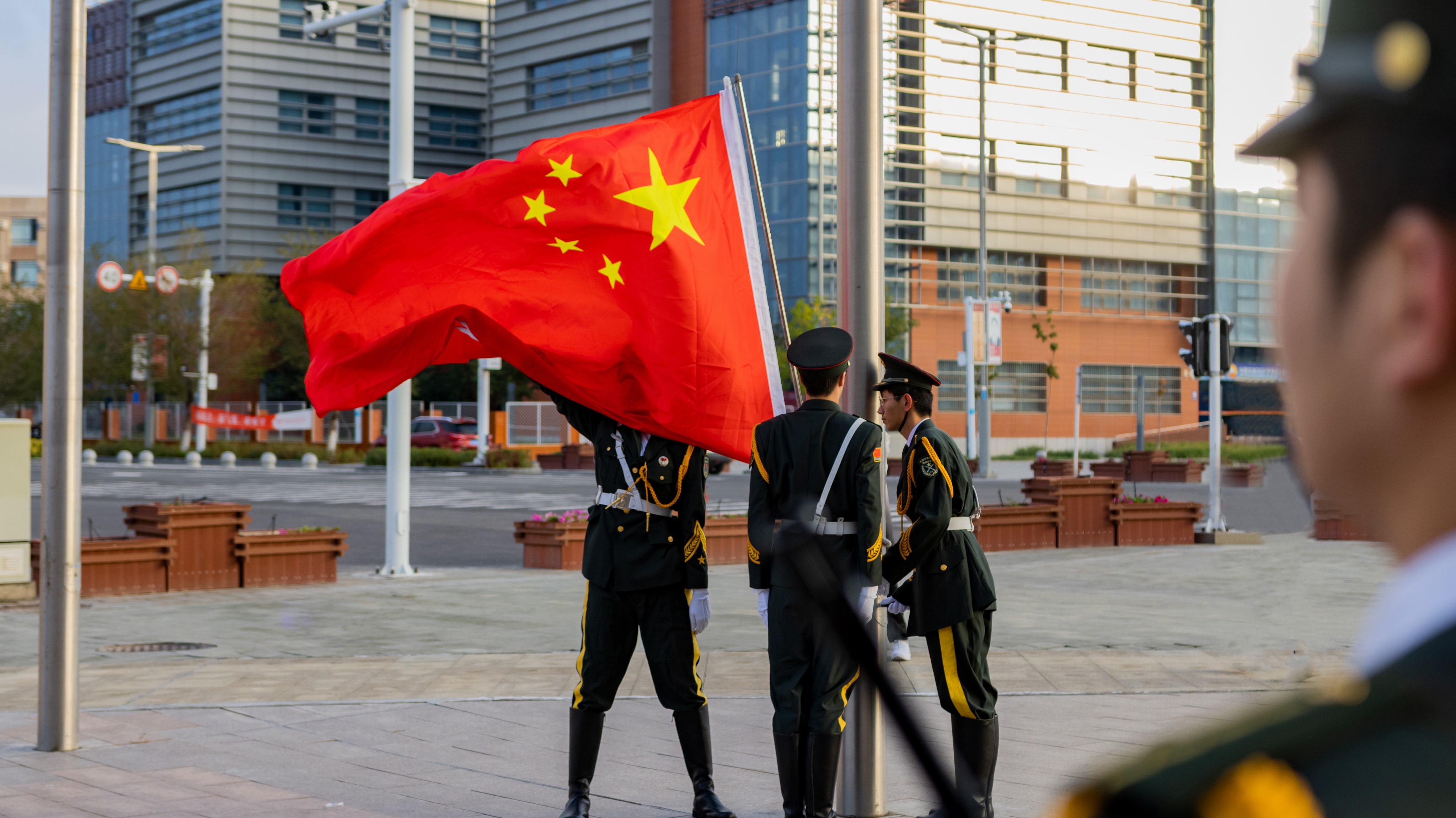 10月1日,伴随着庄严的国歌声,五星红旗冉冉升起,现场师生代表高唱国歌,表达对伟大祖国的无限热爱与炽热真情。
