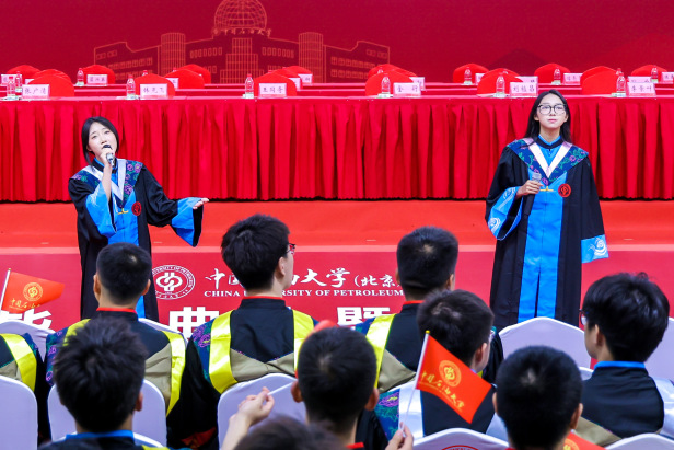 校领导王同奇、金衍、韩克飞、刘植昌、张广清、李景叶、黄磊、李军,各学院(研究院)、相关职能部门负责人以及师生代表、家长代表等参加典礼。典礼通过新华社、新华网、人民日报、中国青年报、中国石油报客户端、新媒体矩阵以及学校视频号、抖音、微博等平台进行直播,近60万人次观看了典礼直播。