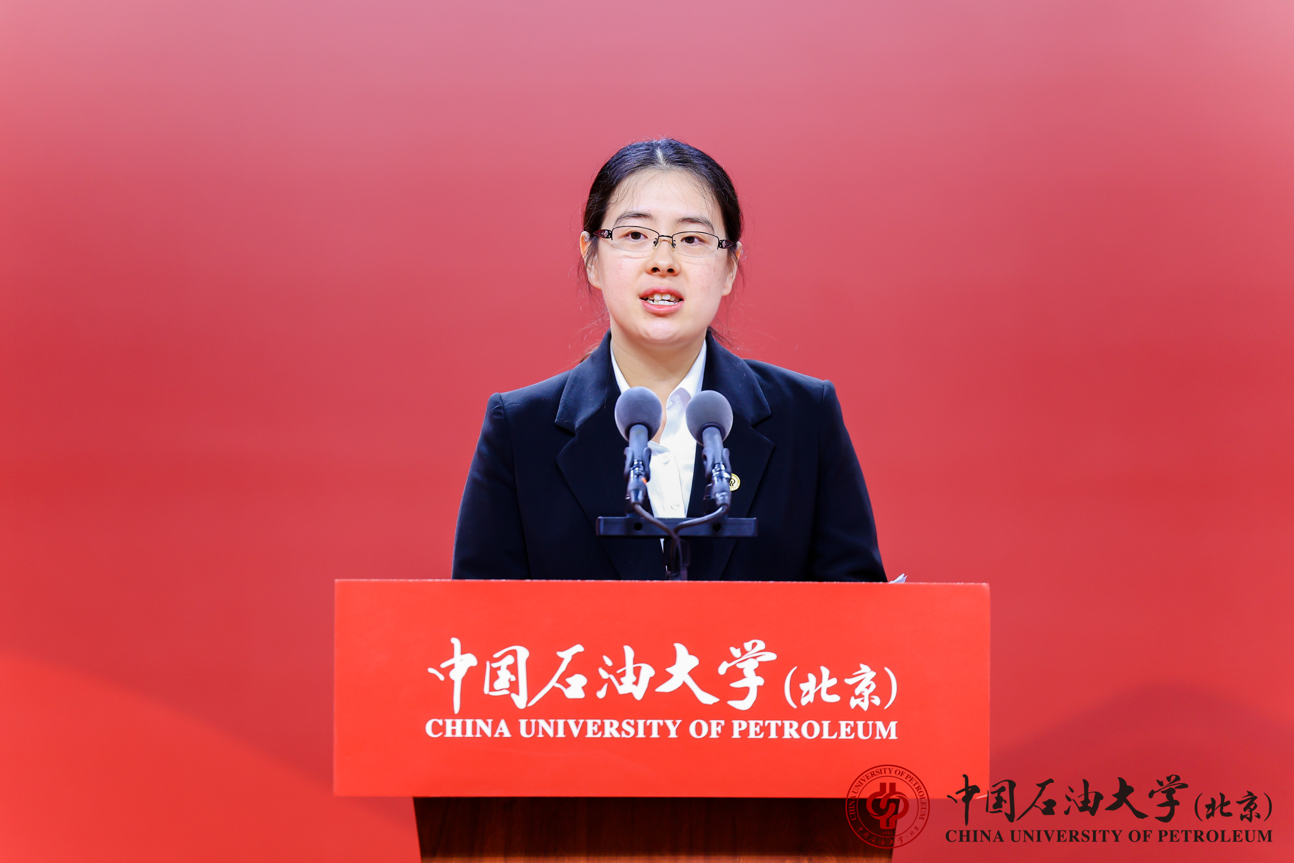 教师代表、理学院教师戴芊慧以“自信、勇气、谦卑”三重品格赠言学子,希望毕业生们传承石油精神,以自信拥抱生活,以勇气披荆斩棘,以谦卑立身行道,带着中石大人的烙印,在青春的赛道上继续奋力奔跑。