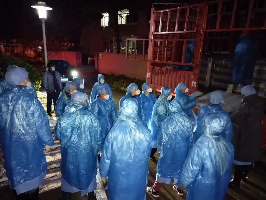 11月10日深夜12点至凌晨2点,公寓管理服务中心组织10多名员工卸运床上用品400多套,用仅有的4辆小三轮车,一趟一趟从东门搬运至体育馆。12日晚11点至凌晨2点,20多名员工搬运防疫物资,凌晨2点半至4点半,冒着大雨到东校园五教,搬卸学校新购置的400套备用床。他们都已不年轻,有的两鬓斑白,有的腰腿不好,但任务面前没有人退缩。他们每日清理公寓楼内涉疫垃圾,并用专业用具清运出楼、及时消毒。