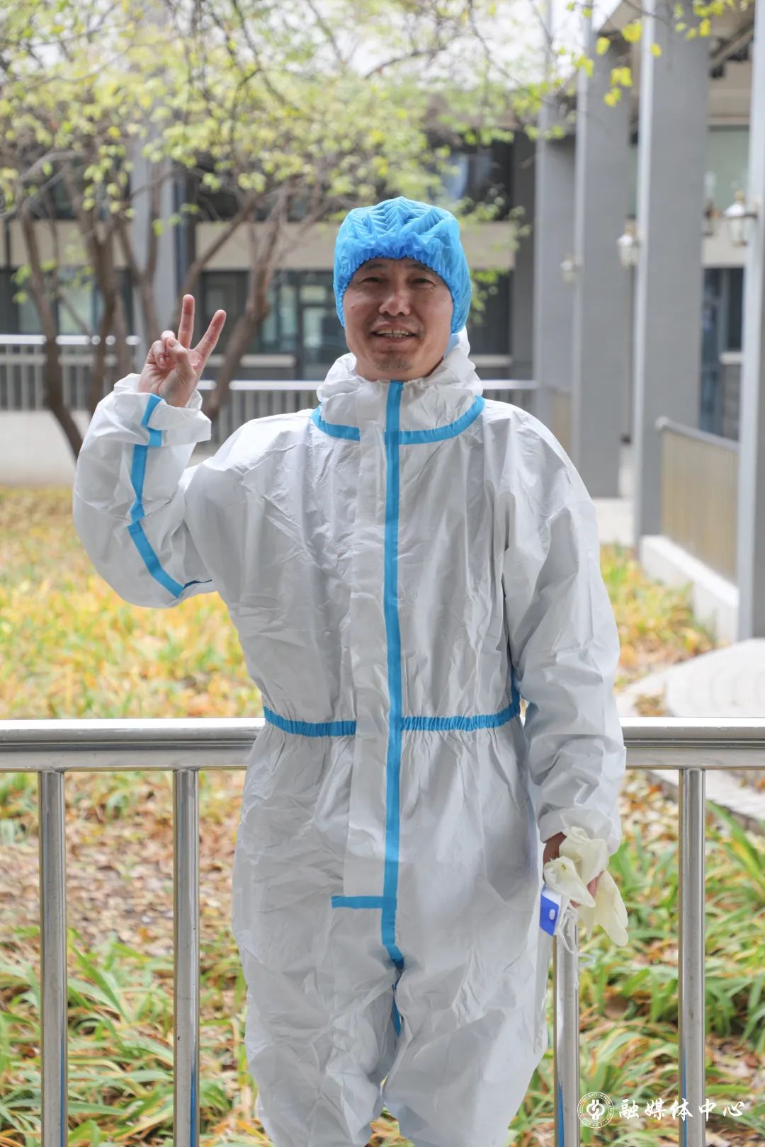 下午三点钟吃完午饭,张冠军给家人报平安。妻子心疼地唠叨:“50多了,高血压,还这么拼命。”张冠军连忙找补:“人家穆桂英53岁还挂帅征西呢,谁说俺男儿家不如女郎啊?!”他说,核酸采样小组里好多老师都是克服了家里这样那样的困难来的,有的家里孩子还小需要照料,有的刚刚失去了亲人,也有像他一样的“50后”“老一代”,“大家都在这个被认为‘高危’的工作中恪尽职守,我也为有幸参与到这样一个群体里而欣慰”。同学们也把张老师化身“大白”的事,在群里广而告之,表达着“师生同在、甘苦与共”的喜悦和感动。
