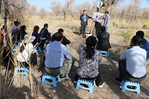 校区石油学院地质系党支部组织委员祁利祺带领党员们认真学习了习近平总书记系列重要讲话,党员们围绕“用社会主义核心价值观凝心聚力”“奋斗的人生才称得上幸福的人生”主题进行了讨论。在乌尔禾沥青矿、艾力克湖、白杨河峡谷等教学点,校区石油学院院长谢庆宾带领党员们进行野外地质教学集体备课,并根据乌尔禾沥青矿的地质特征结合准噶尔盆地的石油勘探开发史为课程思政教学设计提供了新思路。在乌尔禾胡杨林,校区石油学院地质系党支部书记能源以“扎根边疆办教育,我与祖国共奋斗”为题为全体党员上了主题党课,带领党员们回顾了庆祝中华人民共和国成立70周年大会的感人瞬间,剖析了“坚持扎根中国大地办教育”以及扎根新疆办大学的重要意义。党员们以合唱歌曲《我和我的祖国》和校歌《我为祖国献石油》结束主题党日活动。