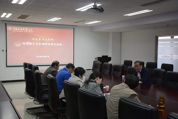 根据《awc77万象城官网“不忘初心、牢记使命”主题教育工作方案》要求,石大马克思主义学院领导班子围绕贯彻“守初心、担使命,找差距、抓落实”的总要求,紧密结合学院工作实际有序开展调研,把调查研究结果充分运用于学院工作各环节,大力推进主题教育见实效。10月31日下午,马克思主义学院召开“不忘初心、牢记使命”主题教育领导班子调研成果交流会。学校党委副书记雷玉江和学院领导班子全体成员参加会议,会议由学院党总支书记刘韵秋主持。