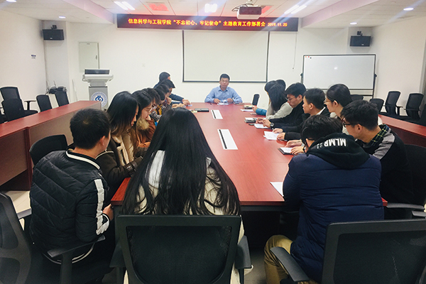 11月25日中午,石大信息科学与工程学院在主楼B1421会议室召开学院“不忘初心、牢记使命”主题教育工作部署会。学院全体师生党支部书记参加了会议。
