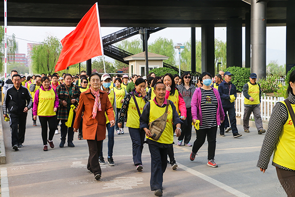 4月13日下午,中国石油大学第六届教职工“走向健康”长走活动在昌平区滨河公园举行。石大副校级干部鲍志东以及700余名石大教职工参加了活动。