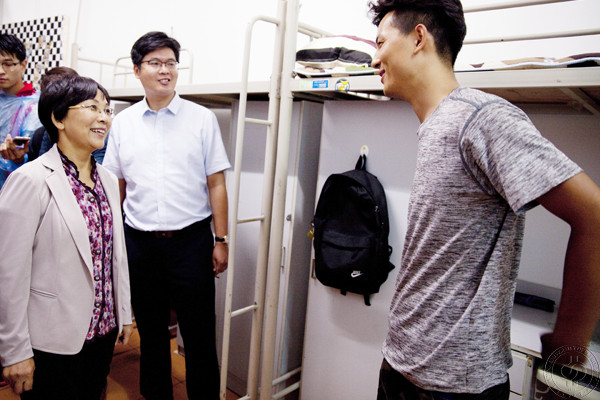 张来斌来到润杰公寓2-371新生宿舍,与地球科学学院新生亲切交流,他说:“住在一个宿舍的六名同学相互团结、相互帮助是最重要的,希望大家共同营造宿舍幸福的小‘家’。”新生王菁表示会与宿舍成员一起加油,度过充实的大学生活。张来斌对新生及家长表示,石大会本着以学生为本的原则,尽心尽力照顾好学生的学习和生活,尽量满足学生成长需求,全力为同学服务。
