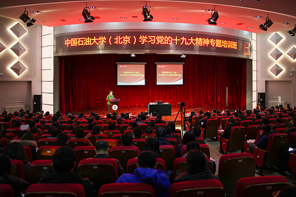 为深入学习贯彻党的十九大精神,深刻领会习近平新时代中国特色社会主义思想,进一步坚定“四个自信”,增强“四个意识”,11月30日至12月2日,中国石油大学在教工活动中心举办了为期三天的学习党的十九大精神专题培训班。全体校领导、处级干部、科级干部、教工党支部书记、民主党派负责人、分工会主席等近300人参加培训。