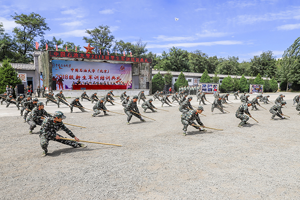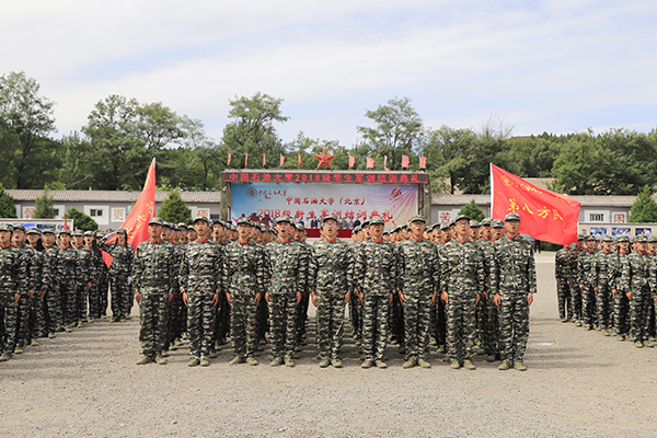 9月15日上午,中国石油大学2018级新生军训结训典礼在北京平北军训基地举行。校长张来斌,党委副书记、副校长韩尚峰,平北军训基地、承训部队相关领导,学校学生工作处、团委、各学院相关负责人及2000余名参训学生参加典礼。