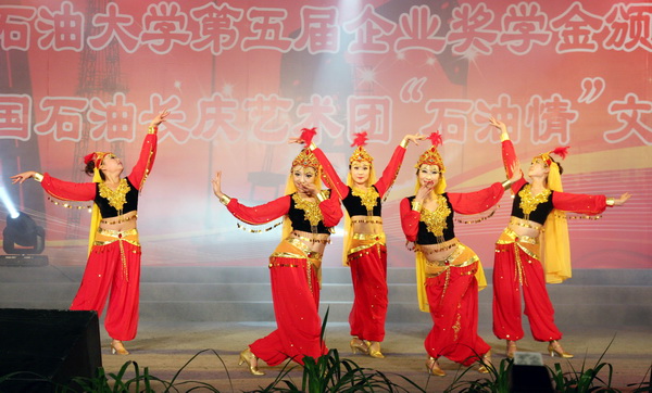艺术团演员们表演的小品《井站趣事》展示了石油工人朝气蓬勃、快乐向上的精神风貌,舞蹈《多彩的梦》表现了采油姑娘们在平凡岗位上不平凡的人生追求,石油歌舞联唱《再唱我为祖国献石油》、《满怀深情望北京》、《石油赞歌》等则表达了石油人无私奉献的爱国情怀。长庆油田地处美丽的鄂尔多斯盆地,陕北民歌联唱,舞蹈《玫瑰花》、《春叶》以及艺术团演员与我校学生一起演绎的萨克斯合奏《小河淌水》等仿佛为观众展开了一幅绚丽多彩的西部风情画卷。