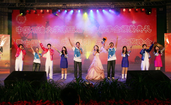 参加中国石油文化论坛的领导和嘉宾,出席我校第五届企业奖学金颁奖典礼的代表们,与我校近2000名师生一起兴致勃勃地观看了演出。