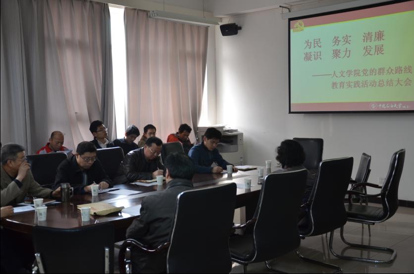 3月25日上午,人文社会科学学院(马克思主义学院)在中油大厦427会议室召开党的群众路线教育实践活动总结大会,党委副书记雷玉江出席会议,人文学院全体员工及部分学生代表参加了会议。会议由人文学院常务副院长丁英宏主持。