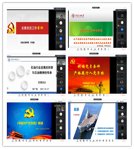 在3月27-28日的线上集中培训环节,第二分党校邀请校党委组织部专职组织员刘忆兰、石油工程学院党委书记宁正福、石油工程学院院长张广清、马克思主义学院副教授吴建伟、马克思主义学院教师袁鹏、马克思主义学院教师杨晓锋等众多优秀党务教育工作者为入党积极分子讲授党课,讲解了发展党员工作案例、入党条件和入党手续,解读了《中国共产党章程》、做了“化制度优势为治理效能”以及“新时代强军战略目标”的报告,介绍了石油行业的发展形势及石油精神的传承,感受了青年共产党员的精神信仰,希望入党积极分子端正入党动机、坚定理想信念、不断提高党性修养,不忘初心,牢记使命。志愿服务实践环节,入党积极分子通过开展志愿服务实践活动,进一步提高了对中国共产党全心全意为人民服务的宗旨的认识,以党员的标准严格要求自己,发挥先锋模范作用。通过课前自学、集中培训环节的基础理论系统培训以及志愿服务实践环节的实践力行,提高了入党积极分子的综合素质。