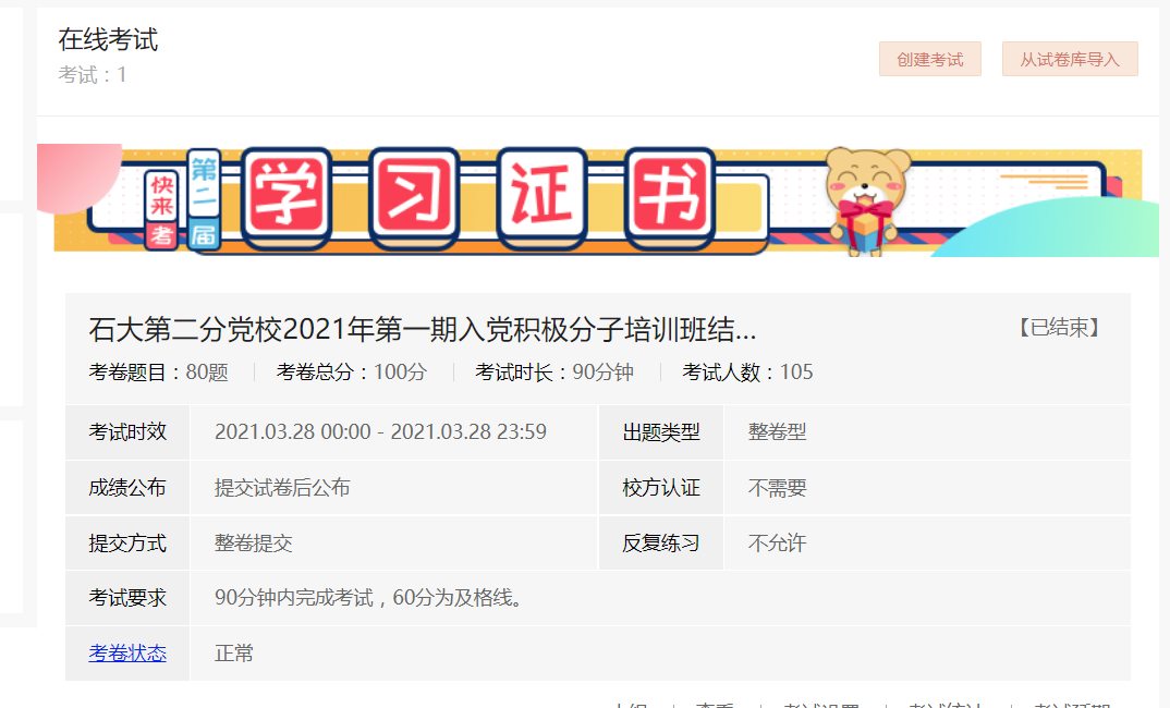 本次入党积极分子培训班结课考试采取线上闭卷考试的形式,利用“易班”综合性平台完成,高效便捷,有利于学员更好地进行成绩分析与思考。