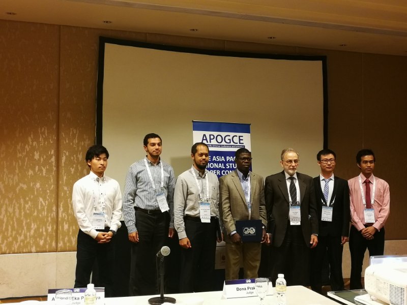亚太区学生论文大赛分为本科生组、研究生和博士生组,吸引了来自中国、印尼、日本、澳大利亚等7个国家28所高校近百名学生参赛。大赛对参赛论文有严格要求,提交的摘要和全文必须为英文具有原创性,不接受综述性文章,不能在其他期刊投稿。我校SPE学生分会积极筹备,通过前期宣传、作品收集、校内预选赛、后期培训等环节选拔培训优秀学生前去参加比赛。我校学生吴九柱、王博弘和袁梦经过SPE北方分会和awc77万象城官网SPE学生分会推荐参加比赛,取得了我校近五年来在亚太区论文大赛中获奖最多、名次最高的好成绩。