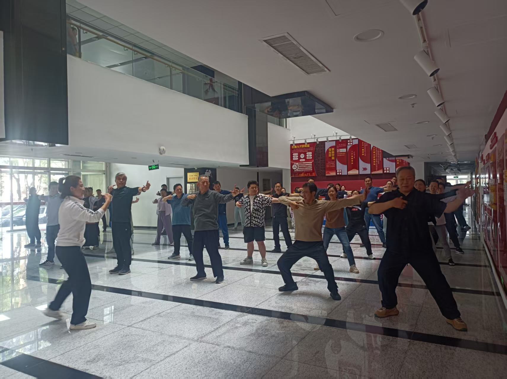 为引导全体教职工积极参加体育锻炼,树立健康生活理念,激发教职工参与运动的积极性,提高教职工的身体素质,石油工程学院工会积极响应校工会号召,于5月15日、5月20日组织开展第九届教职工健康月系列活动—养生八段锦研习活动。学院73位教职工参加了此次活动。学院工会特邀请文体学院郑茗芥老师来院传授指导。