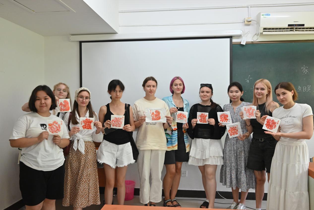 文化课程同样精彩纷呈。学员们在课堂上学习了中国历史、主要城市介绍、二十四节气及跨文化交际知识,并通过麻将学习体验了传统文化的趣味与深意。在校内文化体验活动中,他们亲手完成了剪纸、篆刻、拓印与漆扇制作,试穿了中国传统服饰,直观感受中华文化的独特魅力。