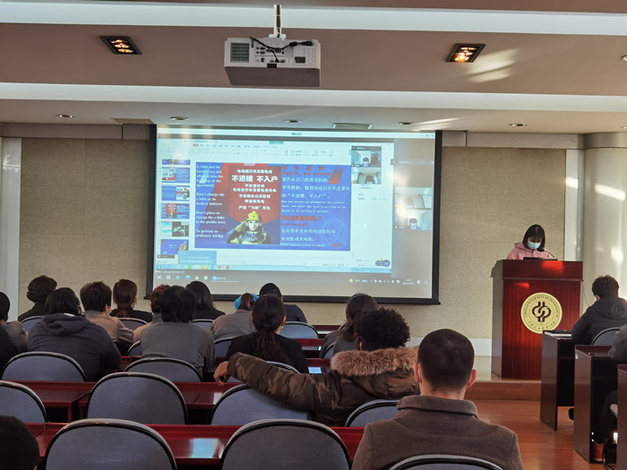 Чтобы повысить осведомленность о пожарной безопасности, улучшить возможность самоспасения и создать культурную атмосферу пожарной безопасности, 9 ноября 2021 года, в день Национального дня пожарной безопасности, Колледж международного образования специально пригласил Ма Сяовея, руководителя боевой группы Спасательной станции Юнань, провести онлайн-двуязычную лекцию на тему "Предотвращение опасности возгорания электрических велосипедов и аккумуляторов" для наших преподавателей, студентов и персонала.