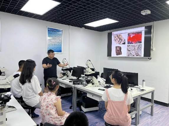 学生们还参观了低温热年代学实验室、显微镜实验室等。在显微镜实验室中,学生们通过显微镜深入观察了地下岩石的微观结构,更直观地了解了岩石的特性和组成。