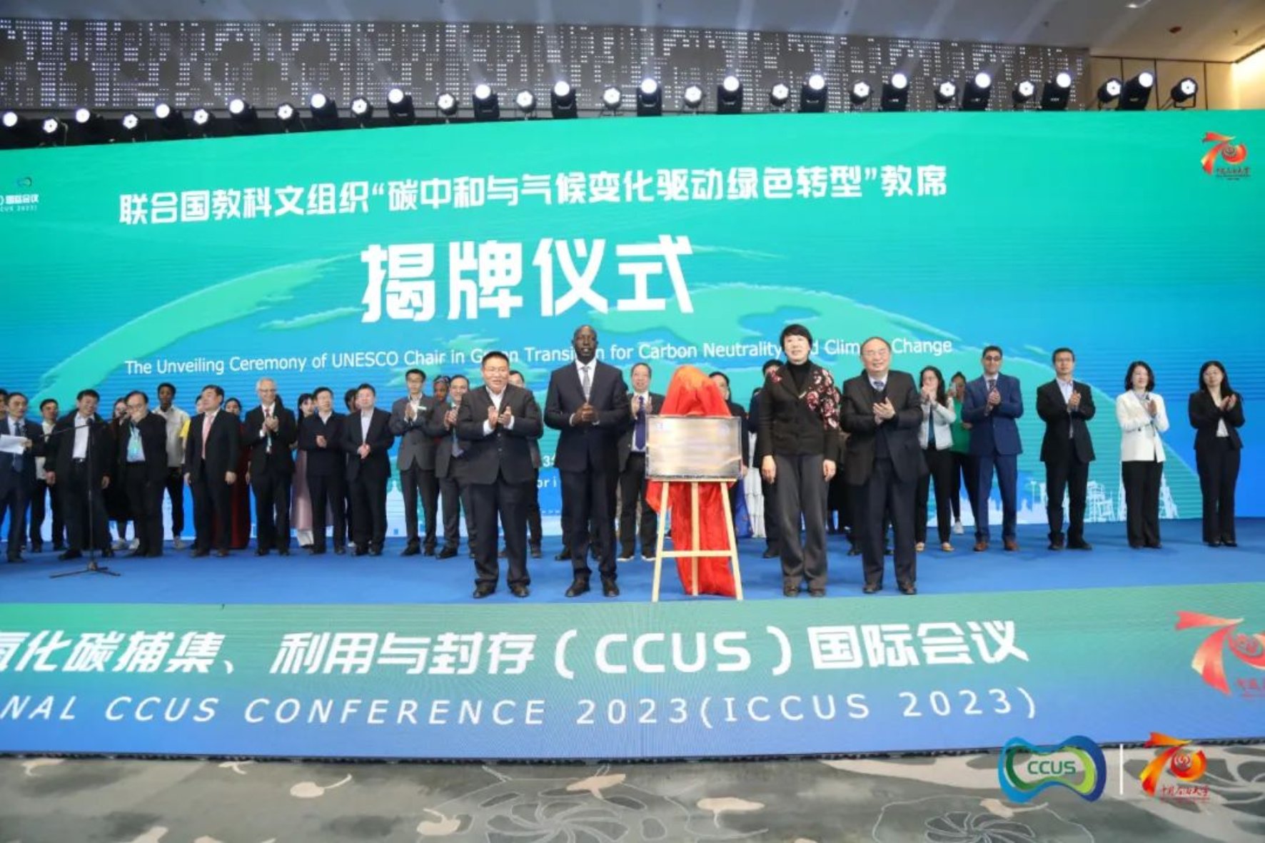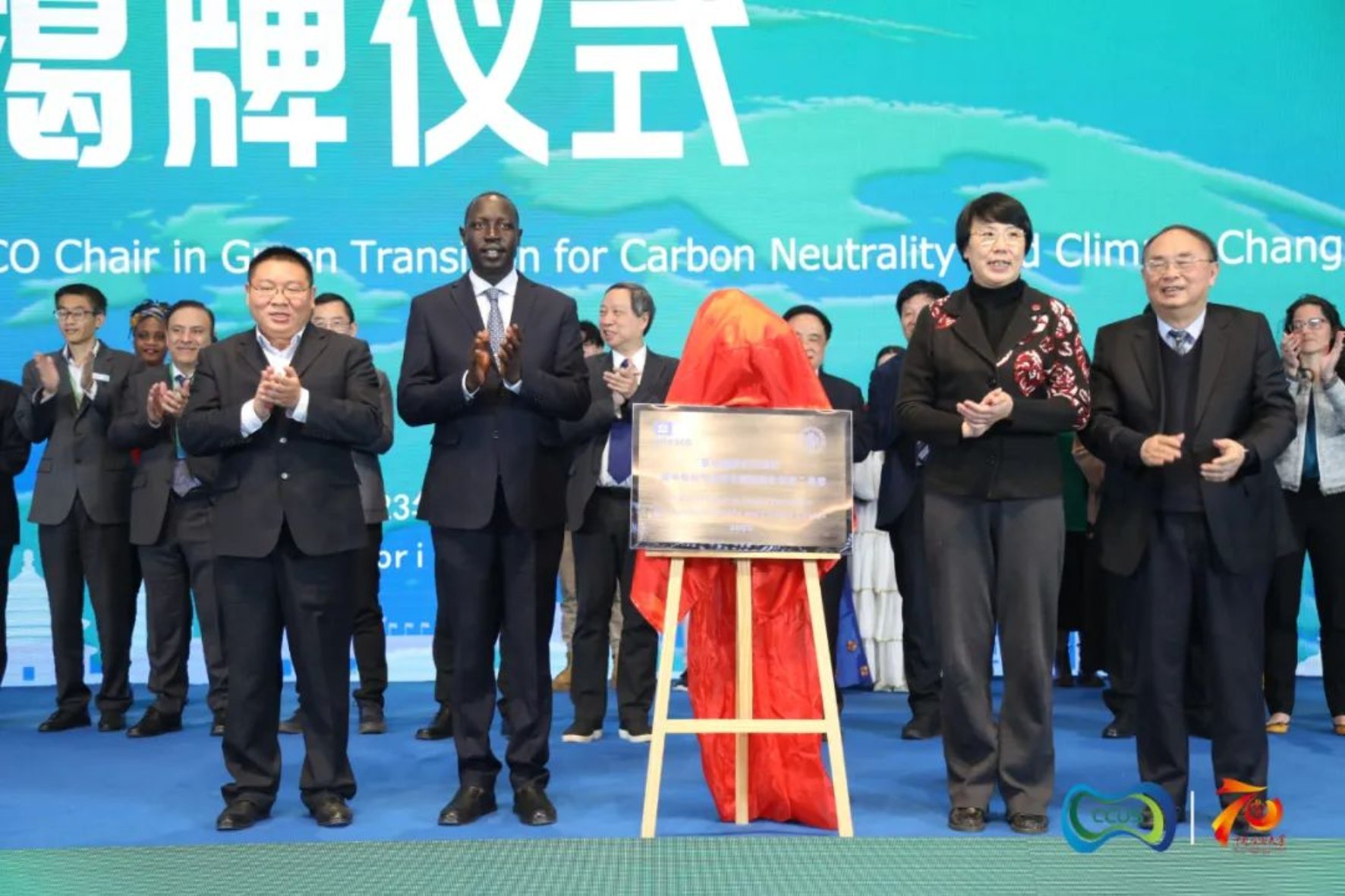 大会同期举行了联合国教科文组织“碳中和与气候变化驱动绿色转型”教席揭牌仪式。